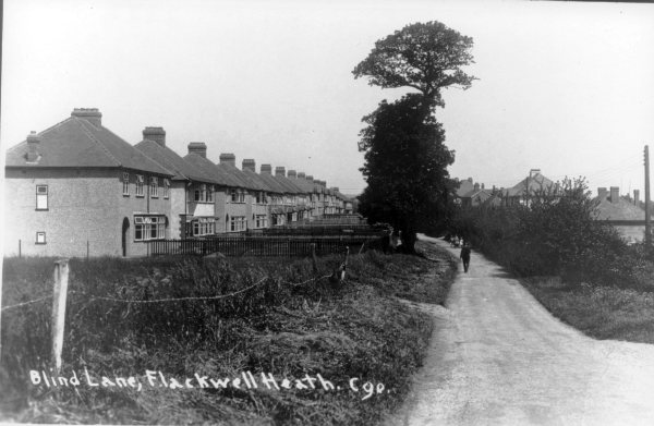 Although there were footpaths across the fields from Flackwell Heath to Cores End, Bourne End and Well End this was the major vehicular route to the shops and railway station in Bourne End. Chalklands, the house owned by Edgar Wallace at the top of Blind Lane, later became the Ramakrishna Vedanta Centre. Several villagers worked for Edgar Wallace and his family during the 1920s.