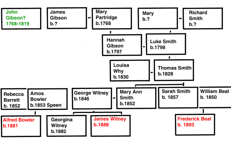 James Witney was the brother-in-law of Alfred Bowler, also on the war memorial. He is descended, on his maternal side, via a Smith family. This means James is a cousin of Frederick Beal