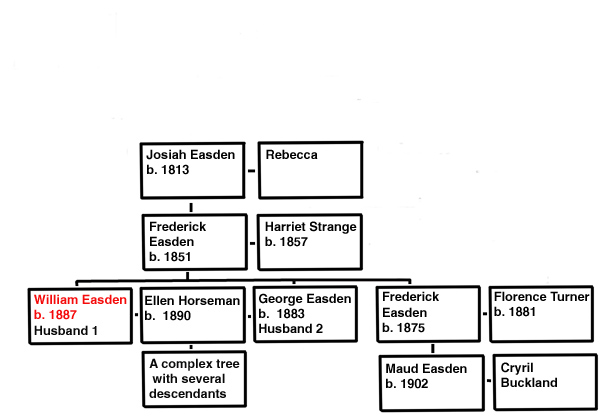 William's family do not appear to link with our other war memorial names. They came from High Wycombe and later settled in Little Marlow and so their distance from the families in Flackwell Heath may have resulted in the lack of local connections. However, later generations eg Maud Easden would appear to have married locally.