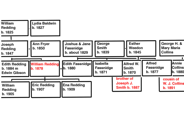 married Ernest Gibson. However, I am presently unable to connect Ernest to Edwin Gibson, the husband of Edith Redding, William's sister.